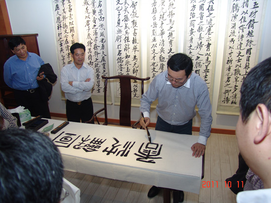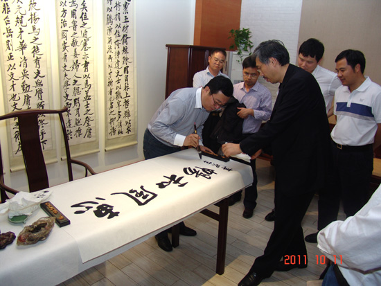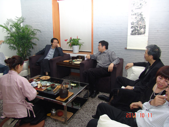 2011年10月11日下午,文化部文化产业司司长刘玉珠、文化部文化产业司巡视员李小磊、中央文化企业国有资产监督管理领导小组办公室常务副主任王家新等文化部及相关部门领导,在浙江省文化厅副厅长田宇原和宁波市文广局副局长励宝夫等的陪同下,来我公司进行考察、调研。董事长张亚佩和总裁助理胡天民表示热烈欢迎,详细汇报了有关文化产业和文化产业园的进展情况,并陪同刘司长一行参观了位于和丰创意广场的民和艺术品博物馆。 刘司长一行高度评价了我公司的阿凡提作品和惠风和畅文化产业园建设理念,并对我公司文化产业的发展给予了指导和勉励。