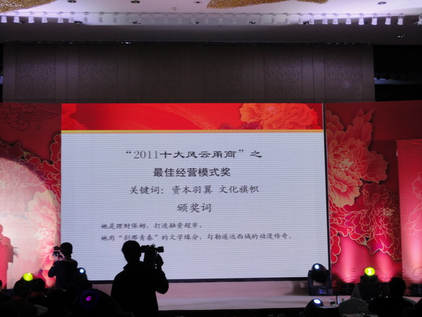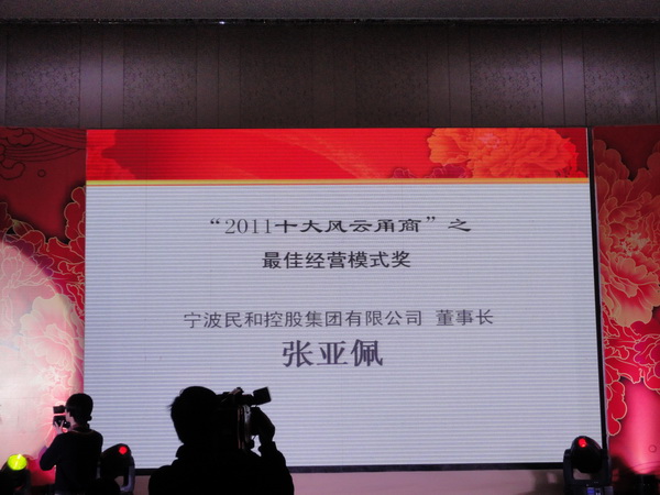 共有20位宁波企业家分获不同奖项,我公司董事长张亚佩荣获“2011十大风云甬商”最佳经营模式奖!