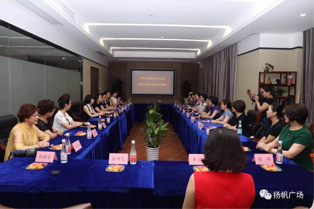 2017年7月14日下午,温州市妇联副主席方黎明携温州市女企业家协会执行会长王莲月等20人,在宁波市妇联副主席张月及宁波女企业家协会会长高屏、秘书长张倩的陪同下,走进宁波民和文化产业园。