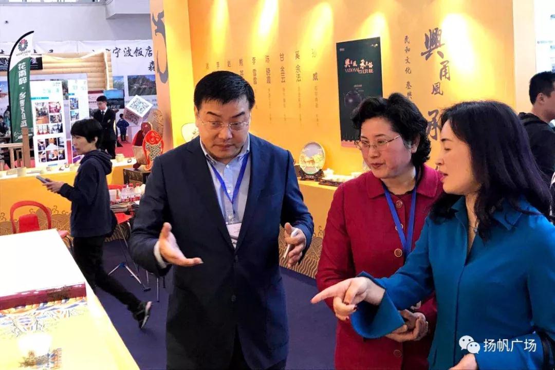 贵阳市副市长王玉祥(右一)宁波文广新局副局长王水维(右二)陪同下莅临展位