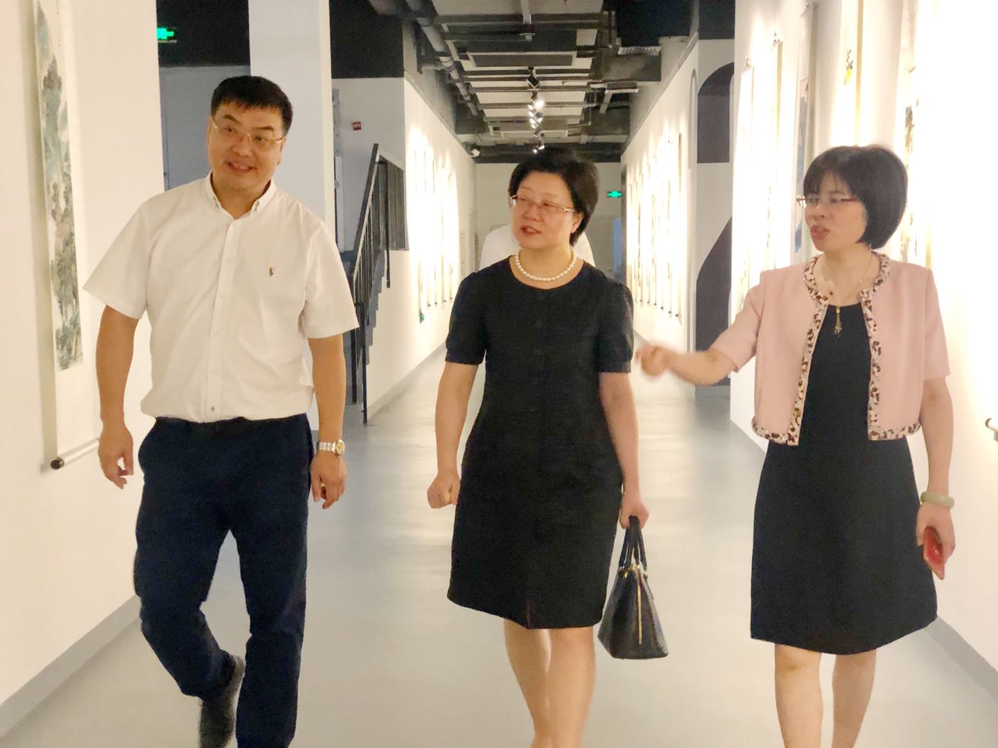 蒋红珊局长一行参观考察了新扩建的龙袍博物馆、扬帆美术馆,详细了解了园区的艺术培训教育、艺术展览展示生态、中小学生实践基地,及企业需求等相关情况。