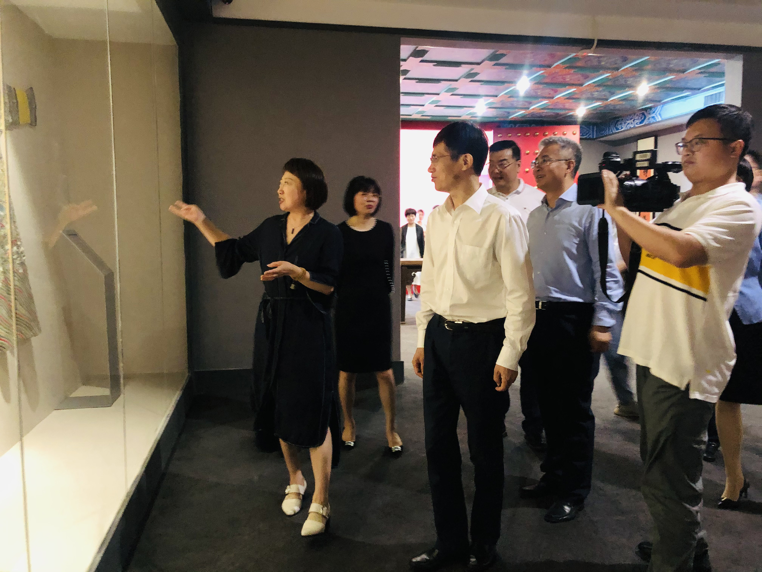 在李军部长等领导的陪同下,吕伟强部长一行参观了扬帆美术馆正在展出的“宁波城市学院艺术学院优秀作品汇报展”,并考察了民和文化产业园中的宫廷服饰博物馆、文化科技名人长廊,及抖音电商直播基地等。 参观扬帆美术馆