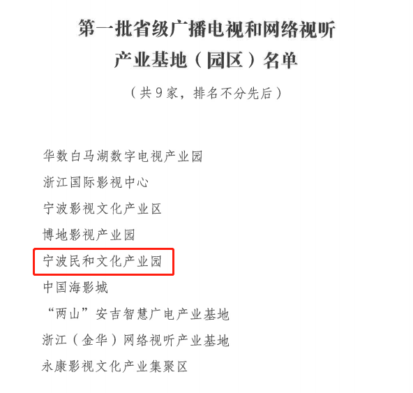 近日,浙江省广播电视局公布第一批省级广播电视和网络视听产业基地(园区)培育对象评估复核结果,宁波民和产业园成功通过复核认定!