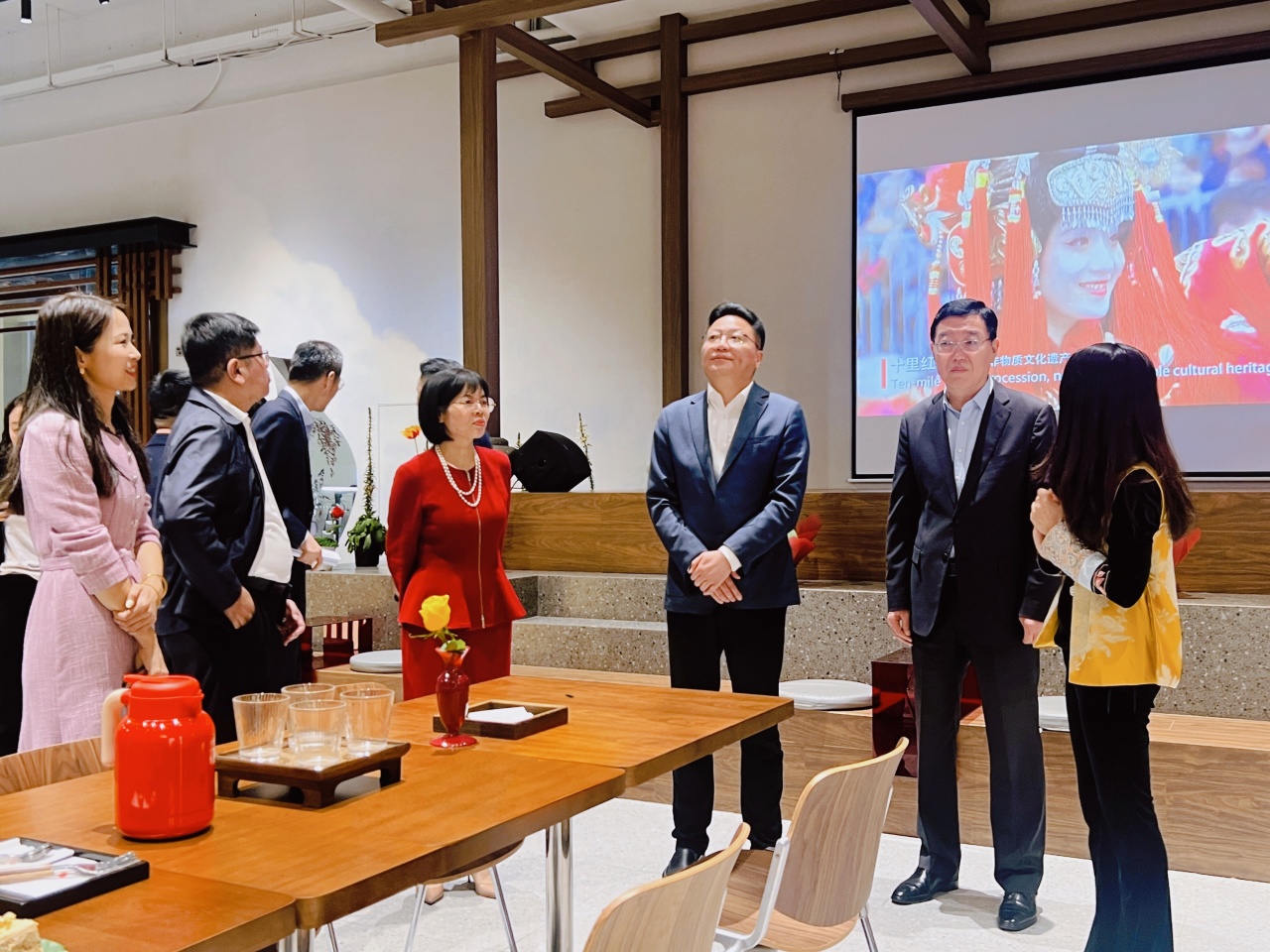 张董事长对杜江副部长一行的莅临表示欢迎。她汇报到,民和产业园是一家纯民营投资建设运营的产业园,坐落于宁波高新区。多年来,在国家文旅部等各级政府部门的关心和支持下,园区形成了影视动漫、广告创意、数字文创等五大产业业态,集聚了500家文创企业,近1000家文化创意工作室,同时涌现了《少年阿凡提》《越过山丘》《流浪地球2》《八角笼中》《风筝·风筝》等一批叫好又叫座的精品力作。先后取得了6项省级荣誉,近期又被命名为“国家文化产业示范基地”,让我们备受鼓舞,但更是对园区的鞭策。