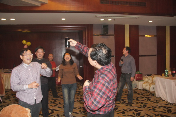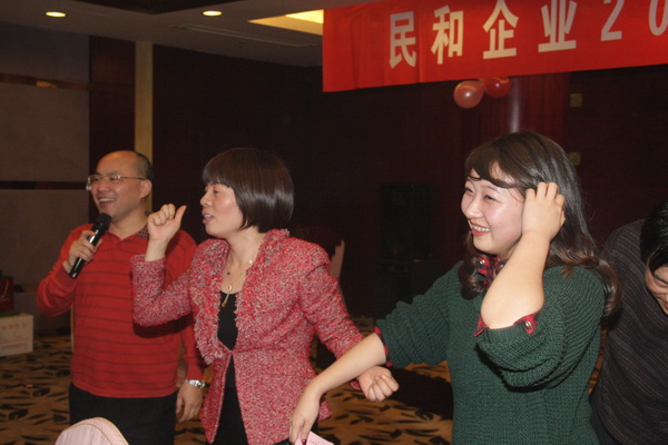 酒会期间安排了精彩的互动和抽奖等环节,董事长亲自上阵,主持了一场“小型拍卖会”互动游戏;金融部的张晋龙总经理主持了“竞猜价格”的互动游戏;来自投资开发公司的孔园为大家献唱了一首《天意》;酒会主持人还结合公司情况,安排了“考考你”环节。整个酒会高潮迭起、精彩纷呈,在反映大家迎新年喜庆无比的同时,也显示了民和人团结有力的一面。