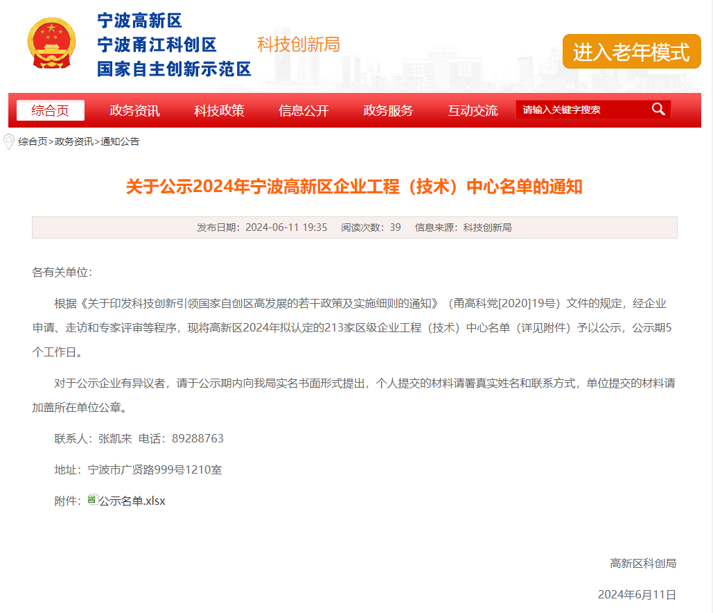 近日,高新区科创局公示了“2024年宁波高新区企业工程(技术)中心名单”。宁波民和产业园有8家企业成功通过认定!