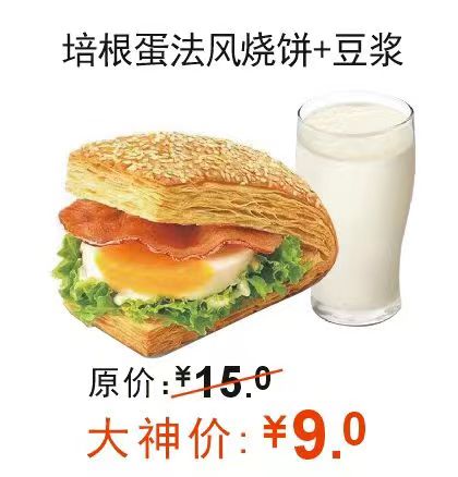 >培根蛋法风烧饼+豆浆