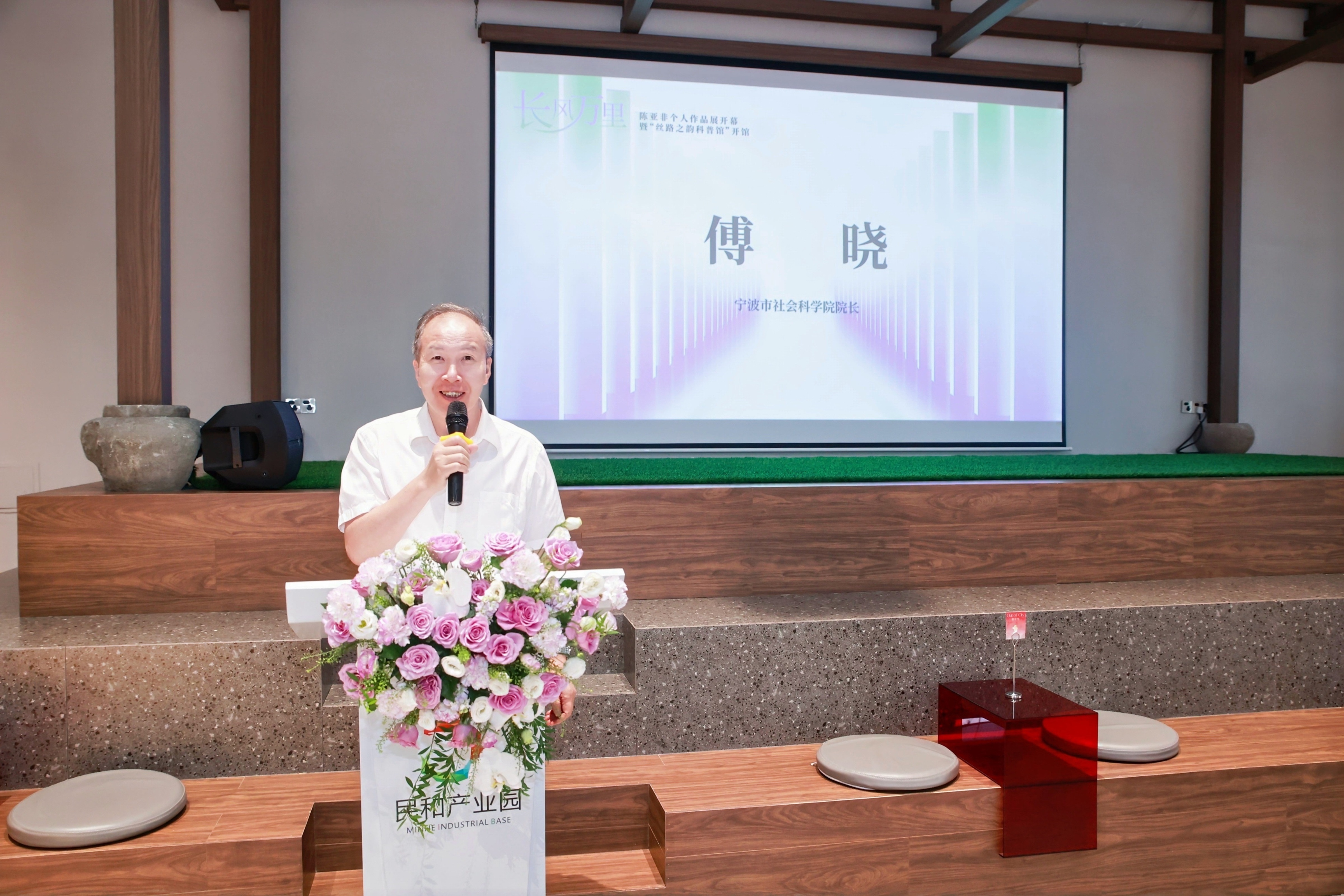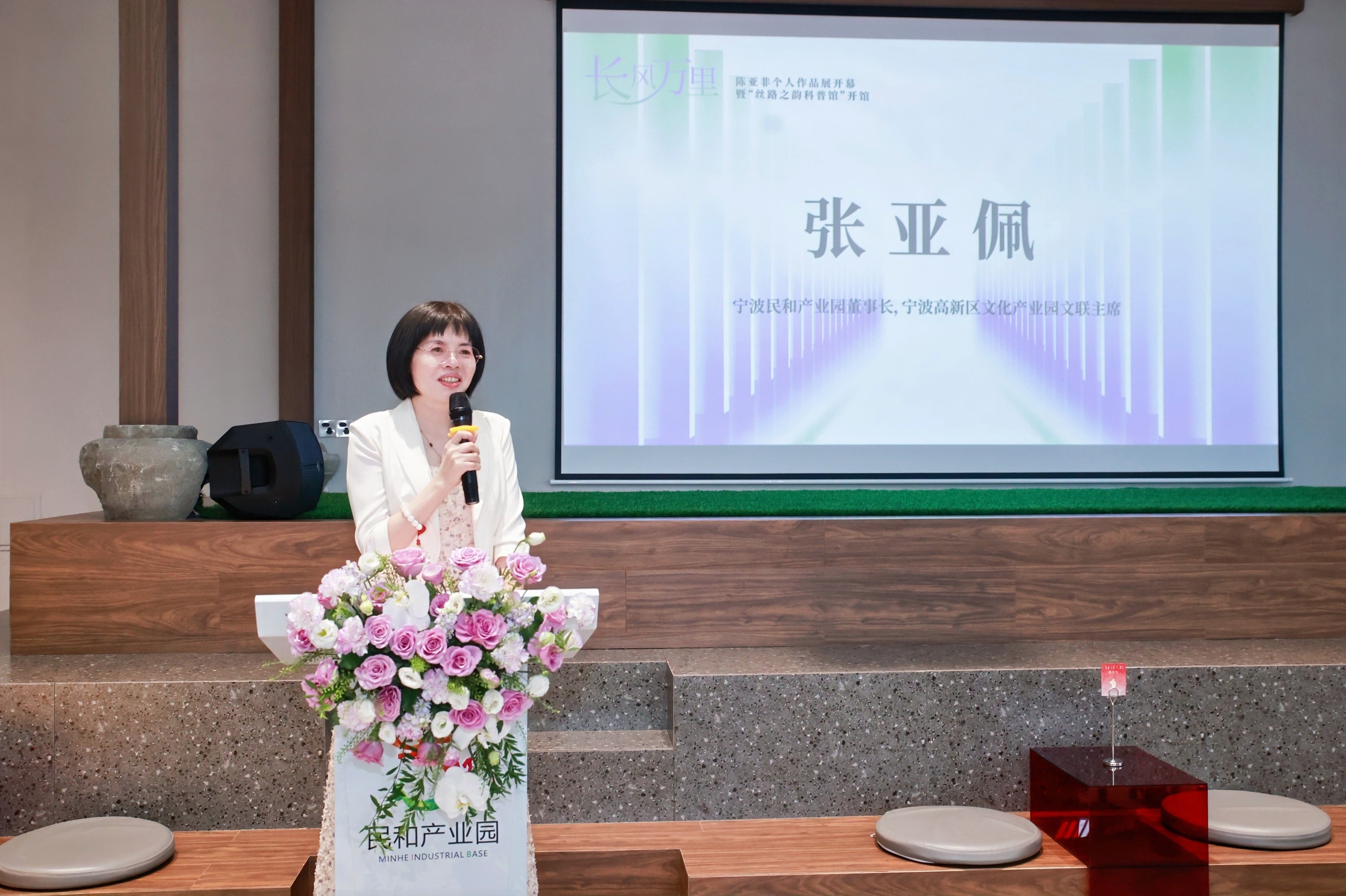 张亚佩在欢迎词中娓娓道来:“多年来,感谢各级领导、艺术家、朋友给予我们美术馆、科普馆、产业园坚定的支持与关怀。经过两年半时间的忙碌,扬帆美术馆终于以焕然一新的面貌在新址民和数字产业基地呈现。此次搬迁,不仅是我们扬帆美术馆发展历程中的一个重要节点,更是我们产业园向更高艺术追求迈出的信心和决心。而“丝路之韵”科普馆的同步开启,则是我们对文化交流与科技创新的又一次积极探索。希望通过这一平台,让更多人能近距离地观赏到珍贵的文物、聆听动人的历史故事、感受深厚的宁波文化底蕴,同时找到属于自己的文化共鸣。