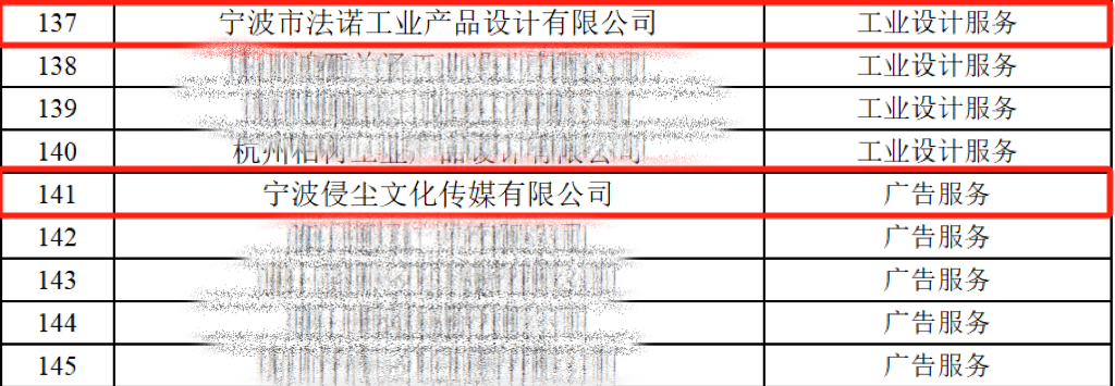 据悉,此次公示的领军企业名单,旨在表彰在浙江省服务业领域中表现突出、具有显著行业引领力和创新能力的优秀企业,以进一步推动全省服务业高质量发展,助力其迈上新台阶。值得一提的是,在“工业设计服务”与“广告服务”两大领域,分别仅有4家、5家企业脱颖而出,而园区企业法诺设计、侵尘文化分别在这两个领域占据了一席之地,且为宁波地区唯一入选该类别的企业,展现了其卓越的竞争力和行业地位。