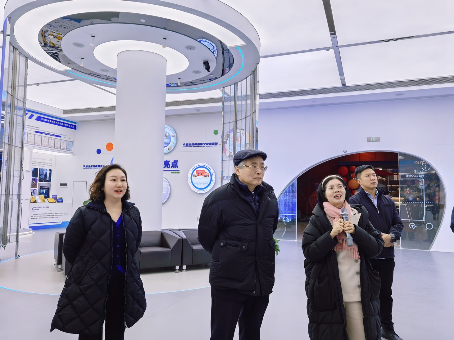 1月16日下午,文化和旅游部原副部长项兆伦莅临民和产业园考察调研,文旅部文化市场综合执法监督局二级调研员王钢随同,宁波市文广旅游局党组副书记、副局长王辅橡,高新区管委会副主任、党工委委员赵菊,宁波市文广旅游局博物馆与革命文物处副处长项芳丽,宁波民和产业园董事长张亚佩,副总经理张驰等陪同。