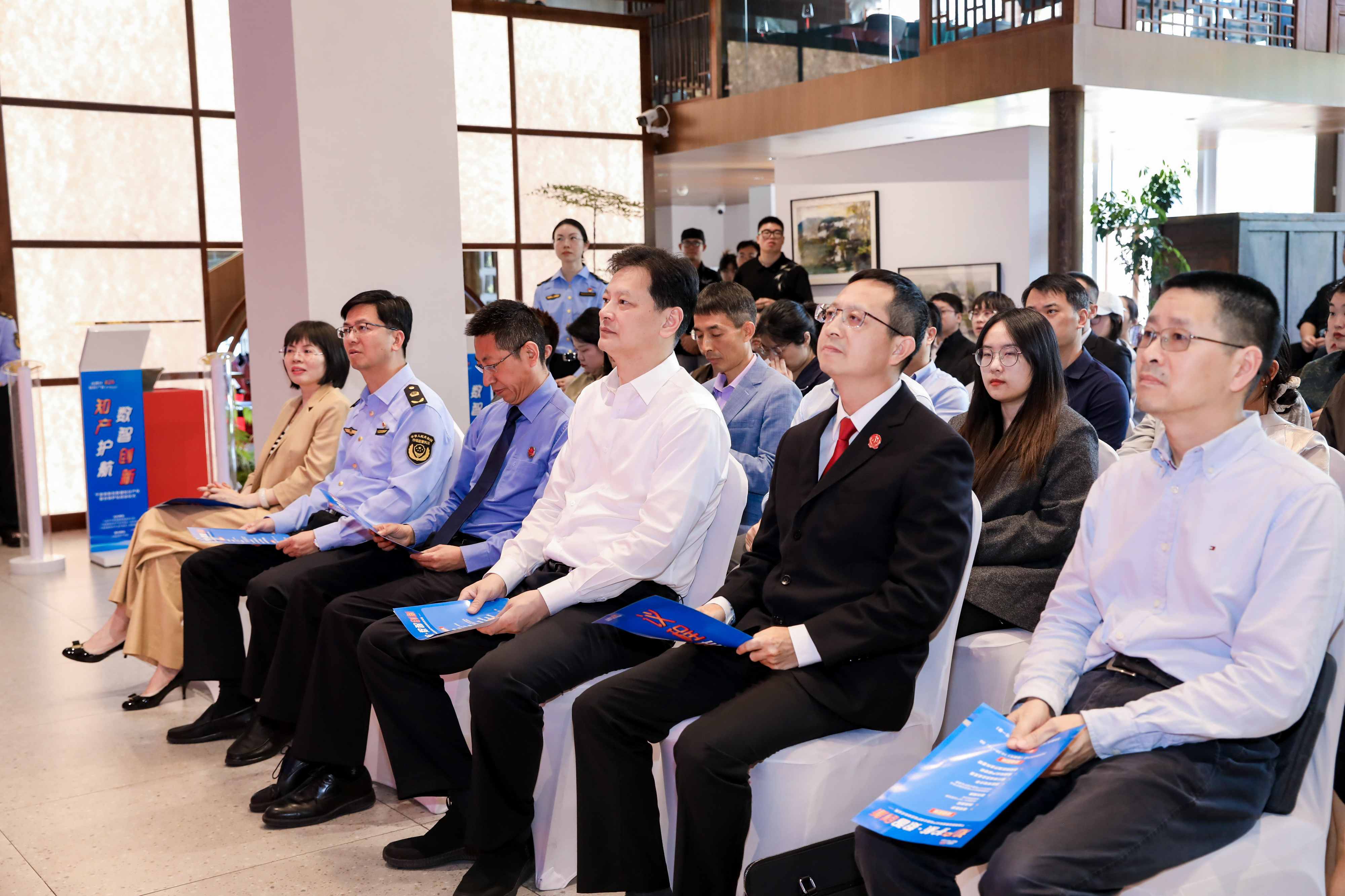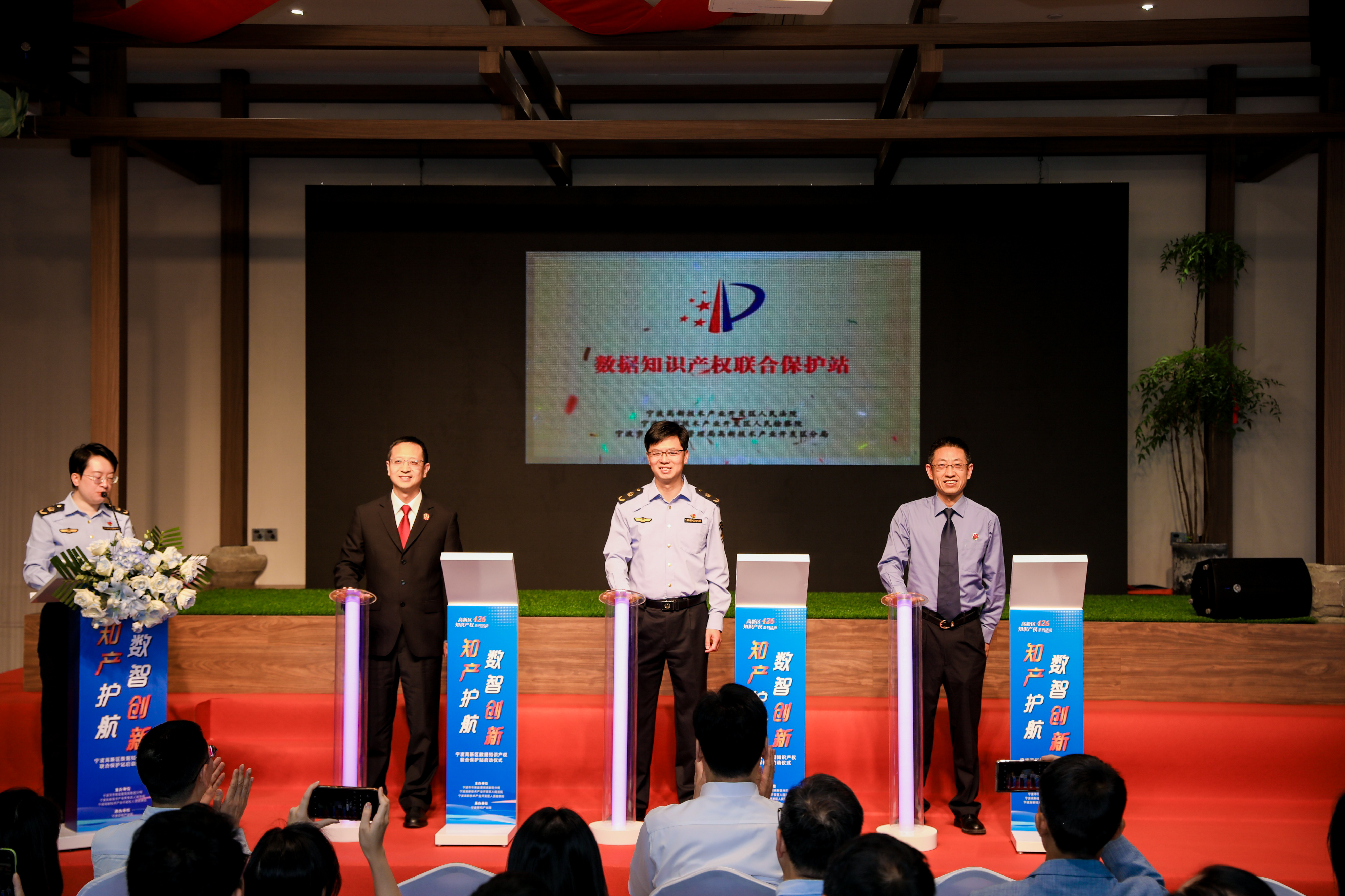 4月25日下午,“知产护航·数智创新”全省首家数据知识产权联合保护站启动仪式在民和数字广告产业园隆重举行。宁波市市场监管局副局长胡晓峰,高新区人民法院院长郑重,高新区人民检察院检察长李冬,宁波市市场监管局广告监管处处长沈建军、知识产权发展处处长任树刚,高新区分局局长江威,宁波民和数字广告产业园董事长张亚佩、总经理朱文文、副总经理张驰等领导嘉宾,以及音爆科技、侵尘文化、亮剑互娱等近50家企业代表共同出席活动,见证这一重要时刻。活动由宁波市市场监管局高新区分局副局长张妍主持。