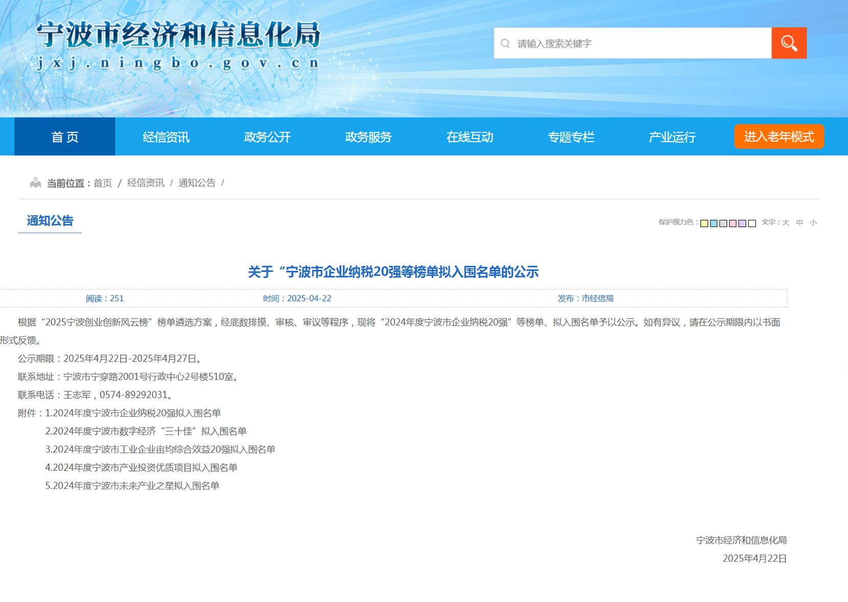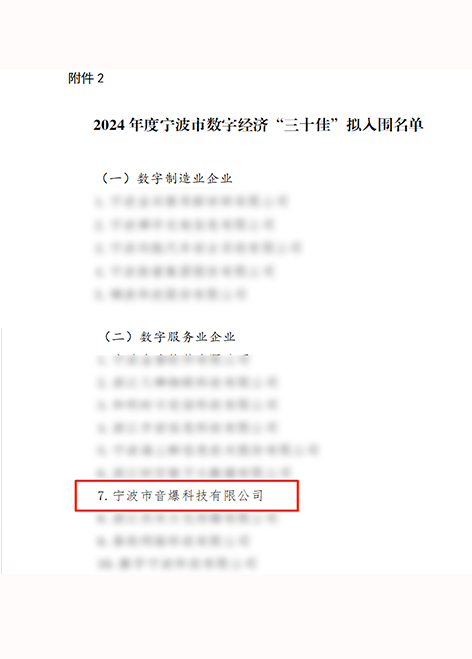 近日,宁波市经济和信息化局公布了2024年度“宁波市数字经济‘三十佳’”企业入围名单,园区企业——宁波市音爆科技有限公司脱颖而出,凭借在数字技术创新与应用领域的优异表现,成功斩获“数字服务业企业”荣誉称号,展现了园区及企业在数字经济领域的强劲实力。