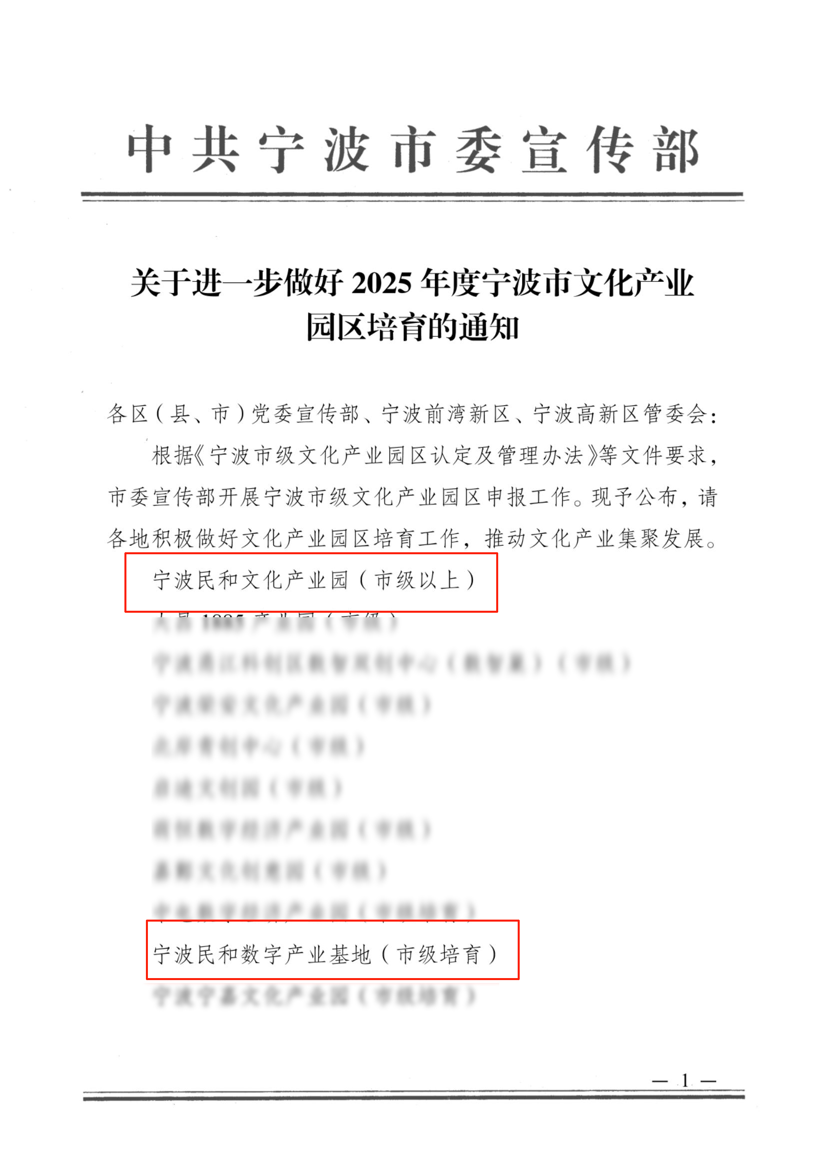 近日,中共宁波市委宣传部公布了《2025年度宁波市文化产业园区培育名单》,宁波民和文化产业园、宁波民和数字产业基地双双入选,分别被认定为“市级文化产业示范园”“市级培育文化产业园区”。值得一提的是,民和文化产业园是本年度唯一获评“市级文化产业示范园”的园区,凸显其在全市文化产业领域的标杆地位。