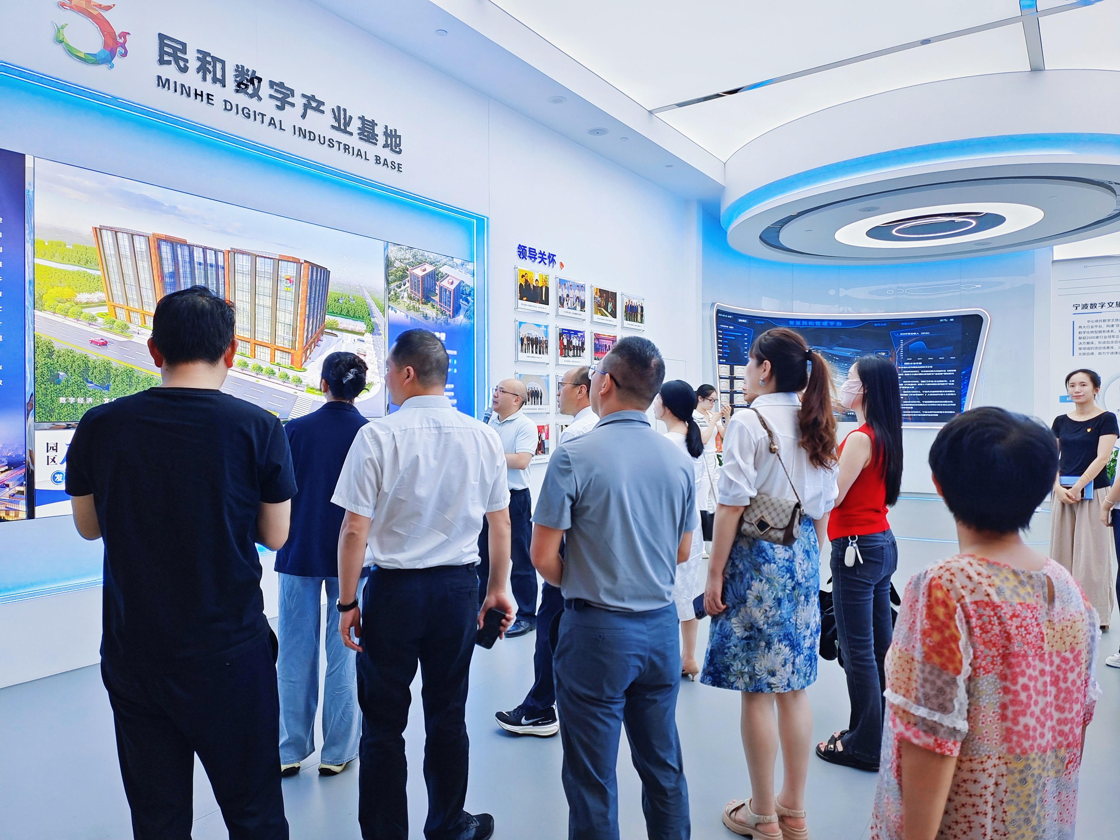来访嘉宾全面了解了民和产业园在数字经济发展、企业培育、文化科技融合等领域的实践成果,并通过沉浸式体验,直观感受园区以数字化手段赋能产业升级的创新路径,以及园区“党建+文化+科技”的融合发展模式。