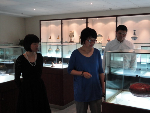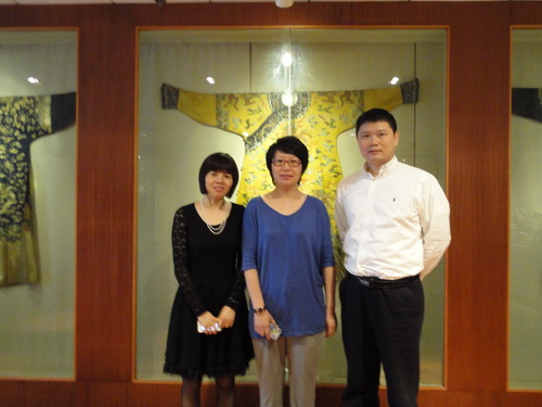 4月11日上午,故宫副研究员,国家文物局文物鉴定专家杨丹霞女士莅临我公司。民和董事长张亚佩、总裁助理胡天民表示热烈欢迎。杨丹霞饶有兴致地参观了我公司正在筹建中的清代龙袍博物馆,对龙袍等藏品十分欣赏,并给予了高度评价。