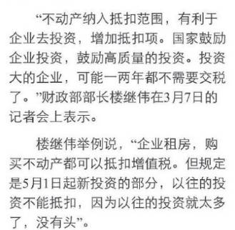 这是楼部长关于不动产抵扣的讲话: